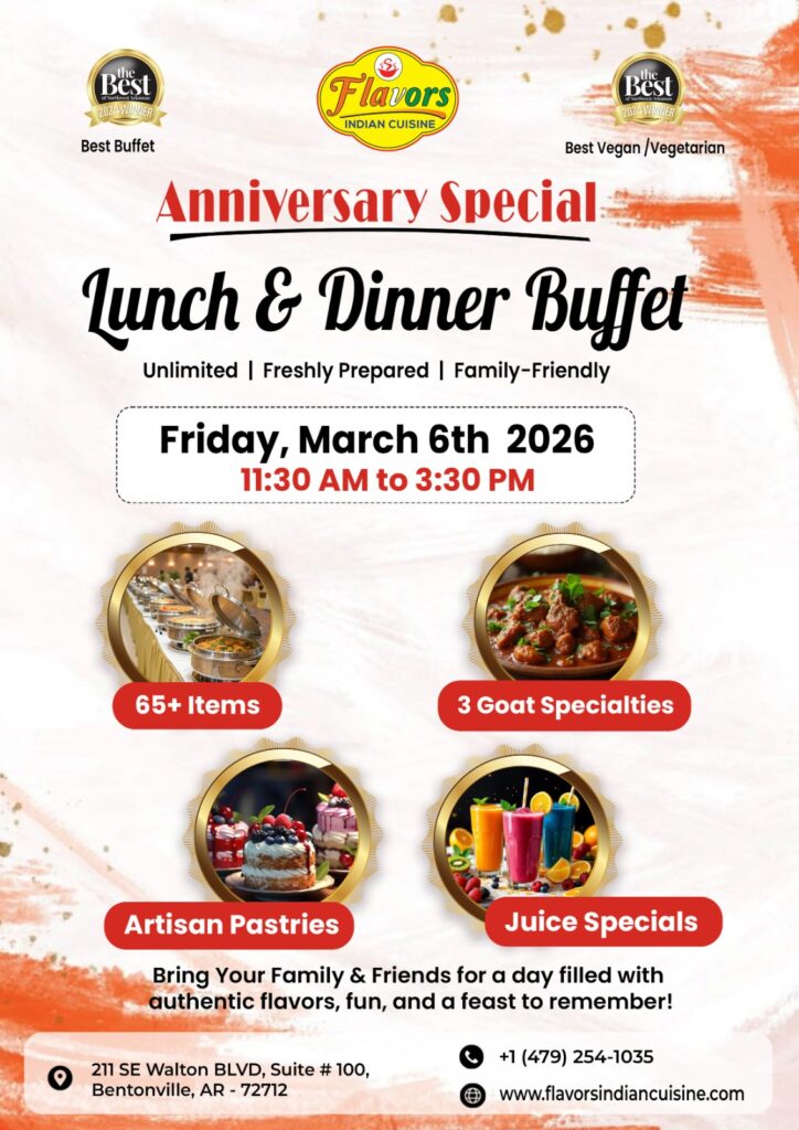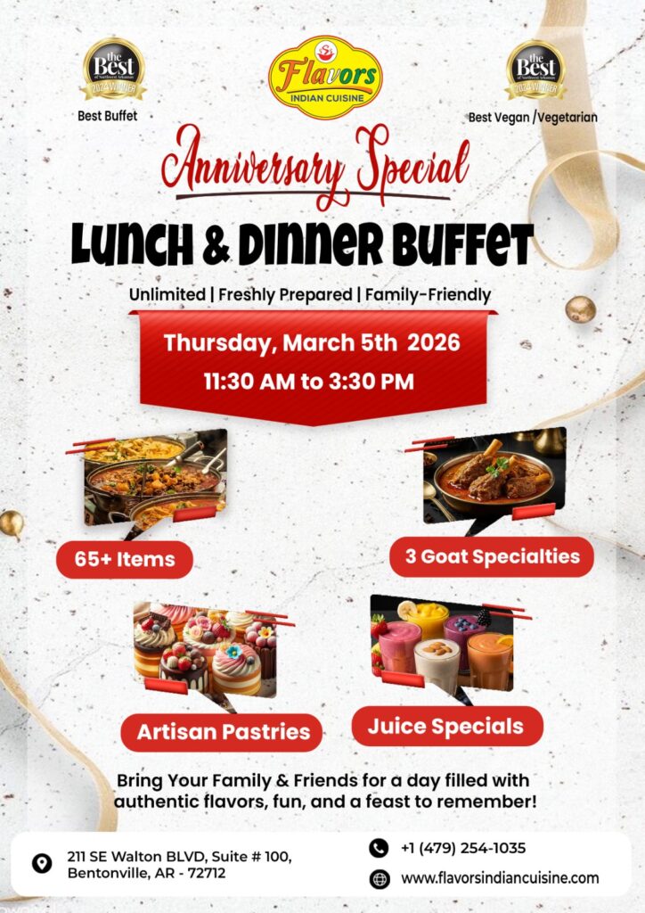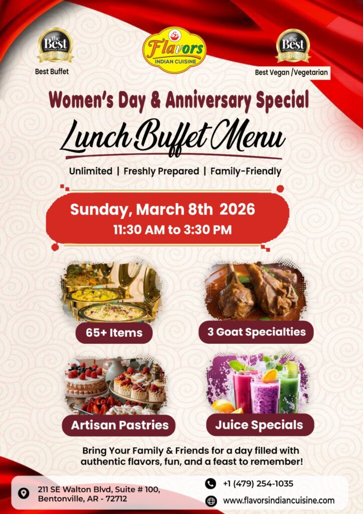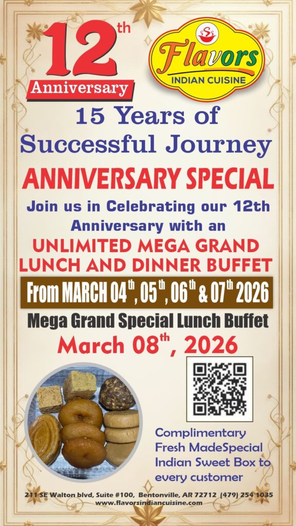 FLAVORS 12TH ANNIVERSARY LUNCH AND DINNER BUFFET HOLI & ANNIVERSARY SPECIAL MEGA GRAND LUNCH BUFFET & DINNER BUFFET ON 4TH MARCH, FROM 11:30 AM TO 3:30 PM AND FROM 5:30 PM TO 10:00 PM ANNIVERSARY SPECIAL MEGA GRAND LUNCH BUFFET & DINNER BUFFET ON 5TH March, FROM 11:30 AM TO 3:30 PM AND FROM 5:30 PM TO 10:00 PM ANNIVERSARY SPECIAL MEGA GRAND LUNCH BUFFET & DINNER BUFFET ON 6TH March, FROM 11:30 AM TO 3:30 PM AND FROM 5:30 PM TO 10:00 PM HOLI & ANNIVERSARY SPECIAL MEGA GRAND LUNCH BUFFET & DINNER BUFFET ON 7TH March, FROM 11:30 AM TO 3:30 PM AND FROM 5:30 PM TO 10:00 PM WOMEN'S DAY & ANNIVERSARY SPECIAL MEGA GRAND LUNCH BUFFET ON 8TH March, FROM 11:30 AM TO 3:30 PM Previous Event Video Glimpsehttps://www.youtube.com/watch?v=gL8GWNn1eRY&t=1shttps://youtu.be/giDZqoi2ftQ